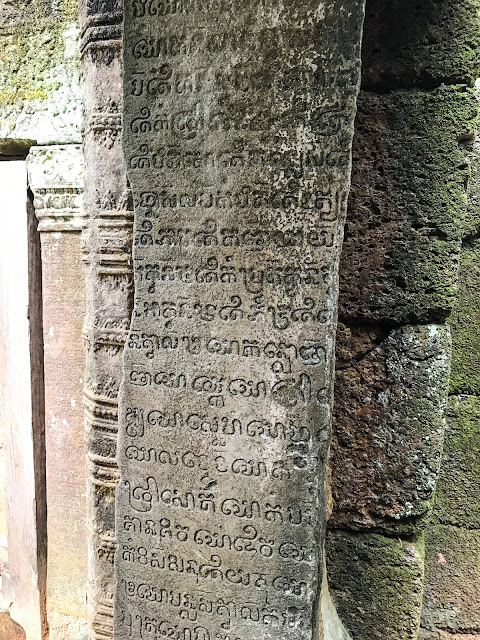ガイドブックなどによると、アンコールワットから離れた遺跡の敷地内には、まだ地雷が残っているので、所定の道から外れないようにと注意してある。私たちのドライバーは、遺跡内の地雷はすべて除去済みで、全く安全と言った。この看板には、ドイツの支援により、地雷438発と不発弾809発が除去され、除去作業は現在まで続いていると書いてある。所定の道を外れないという案内に従う。といっても、ここは崩壊が進む廃墟なので、所定の進路以外を進むことは不可能